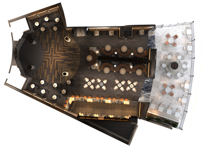 Modern lüks anlayışını zamansız bir tasarım diliyle bir araya getiren, güçlü ve sofistike bir iç mekân kurgusu üzerine geliştirilmiştir. Mekânın genel atmosferi; akşam kullanımına odaklanan, sıcak, davetkâr ve seçkin bir deneyim sunacak şekilde tasarlanmıştır.